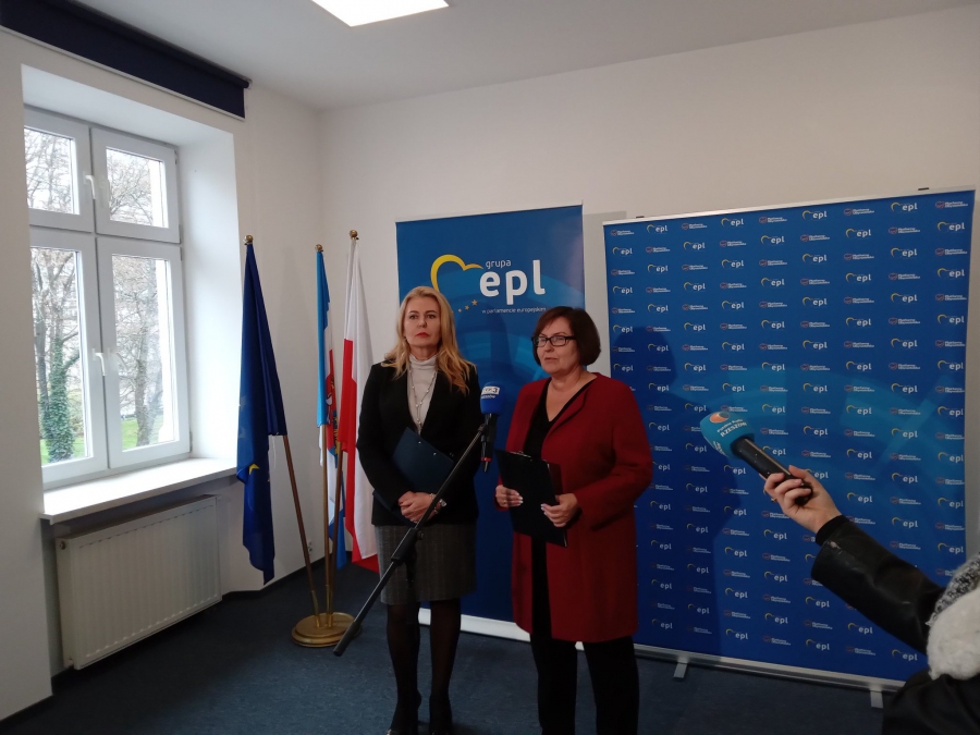 Rzeszów, Konferencja prasowa Elżbiety Łukacijewskiej na temat zmian właścicielskich w fabryce Autosan, przyszłości produkcji w HSW Stalowa Wola oraz działalności Fabryki Wagonów w Gniewczynie Łańcuckiej